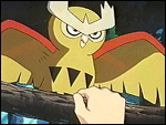 No começo, ele era perseguido por um Pesquisador que tentava capturá-lo, mas nunca conseguiu. Ash então desafiou o Noctowl usando o Pikachu, vencendo a batalha e capturando o raro Pokémon